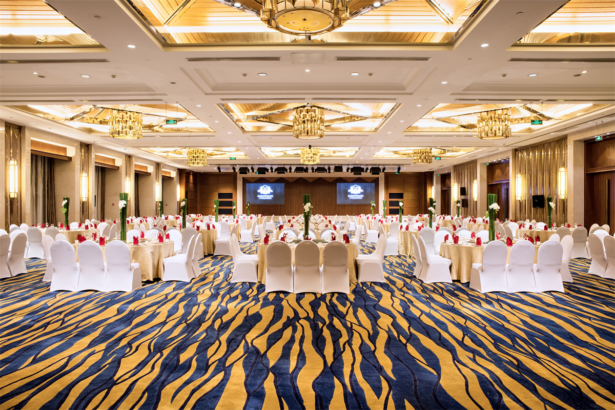 配备大小会议室6个,硬件设施一流,超大多功能宴会厅采用无柱式设计,一楼东方宴会厅,面积1335平方米,可容纳600人同时用餐,是举办鸡尾酒会、宴会或结婚、喜宴的最佳场所;