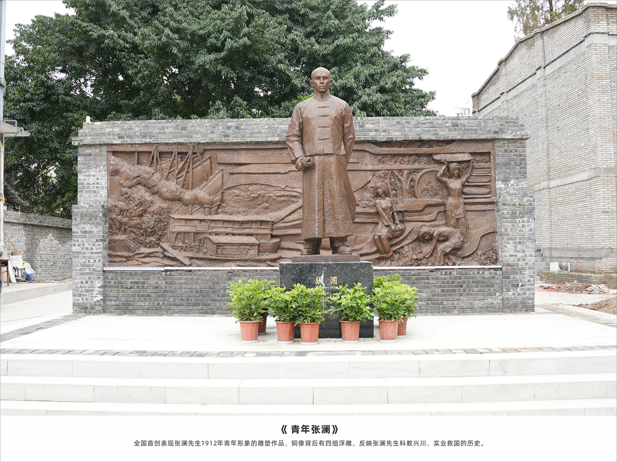 这是全国第一尊表现张澜先生青壮年形象的雕塑作品。创作依据是1911年张澜先生三十九岁左右在成都参加辛亥秋保路运动时的历史文献资料。
